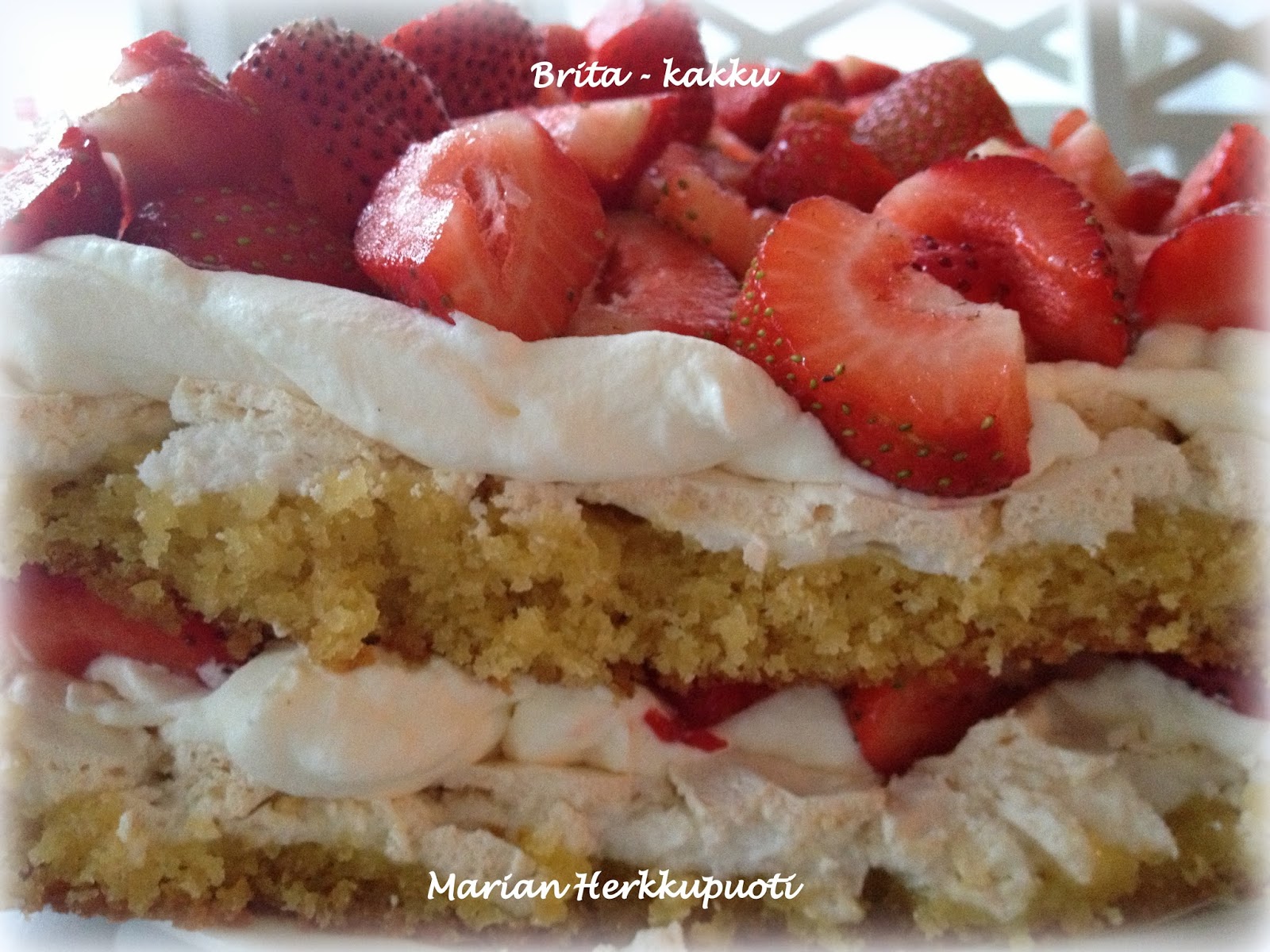 mansikoista tehdyn Brita-kakun maku on joka kesä aina yhtä hurmaava! Pohja on